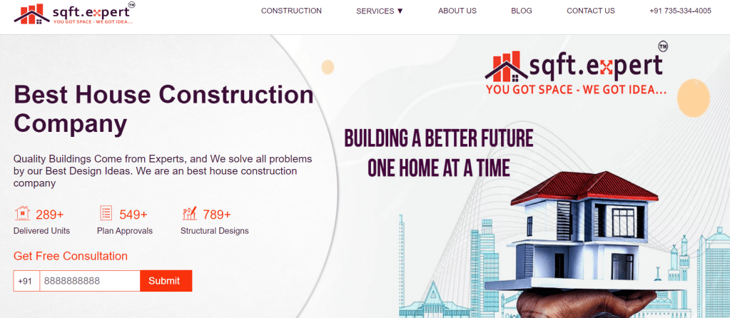 At Sqft.Expert, your vision is our inspiration. House construction company We offer customized solutions tailored to your unique preferences, ensuring that your dream home reflects your individuality and style.
